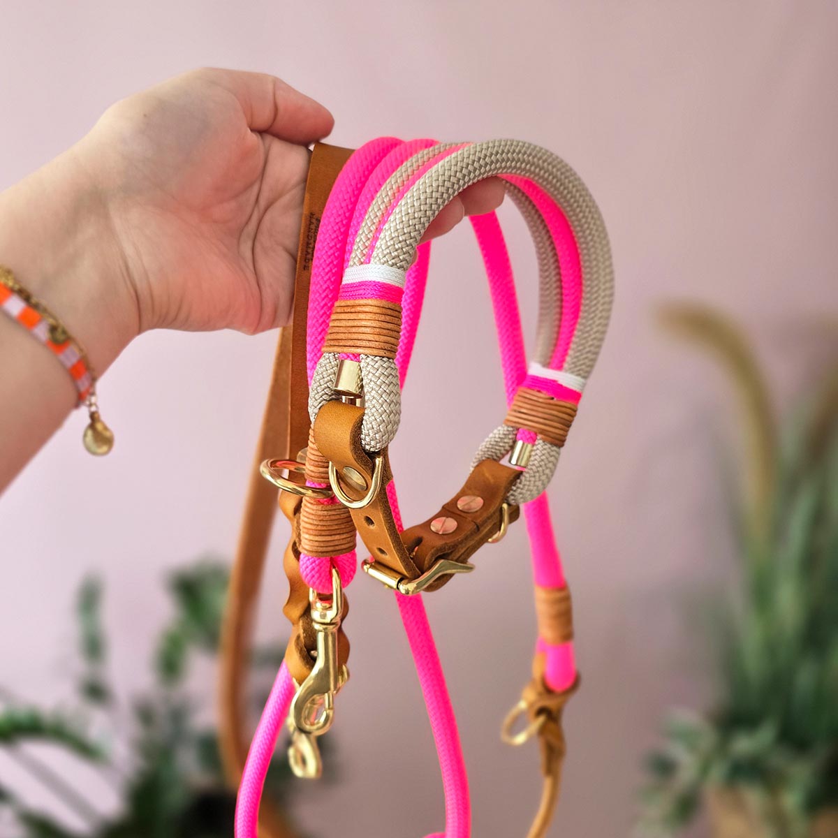 Für Hunde mit starker Leinenzugkraft ("Leinenraudis") empfehlen wir eine doppelte Sicherung – beispielsweise durch zwei Karabiner an Halsband und Geschirr. Bei intensiver Beanspruchung tritt ein höherer Verschleiß auf, weshalb hier besonders auf die Karabiner und das Material geachtet werden sollte.