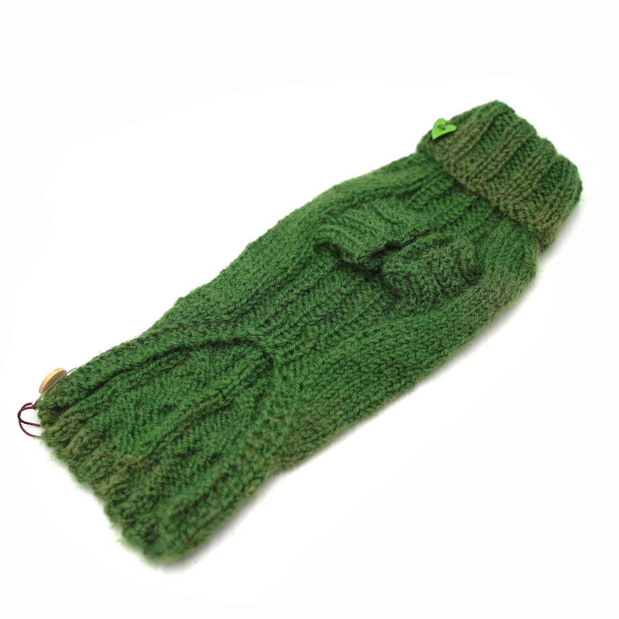 Tipp: Unsere Erfahrung hat gezeigt, dass die Pullover besser passen, wenn der Rücken 1-3cm länger ist als ausgemessen. Durch die Bewegung der Hunde bleiben so die Nieren schön warm. Der Brustumfang solle ca. in der Mitte liegen, vom angegebenen Bereich. Jeder Pullover wird in liebevoller Handarbeit von Hand gestrickt. Keine Nähte, keine Verschlüsse. Dadurch wird die höchste Bequemlichkeit für unsere Hunde garantiert. Sie sitzen enganliegend, wie eine zweite Haut. Es können auch Mäntel darüber angezogen werden, sofern der Mantel groß genug ist.